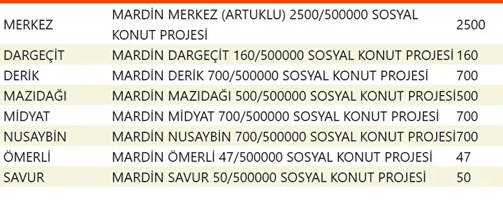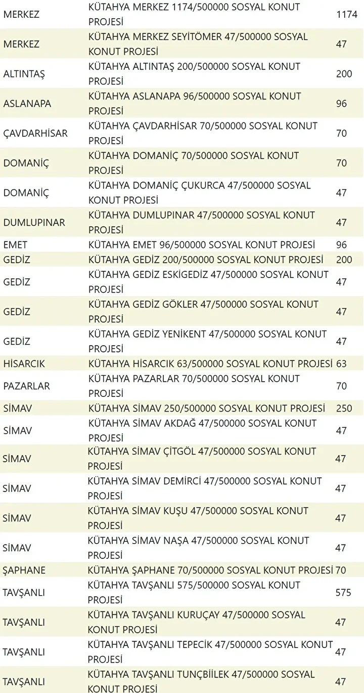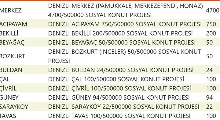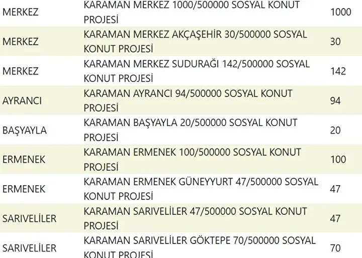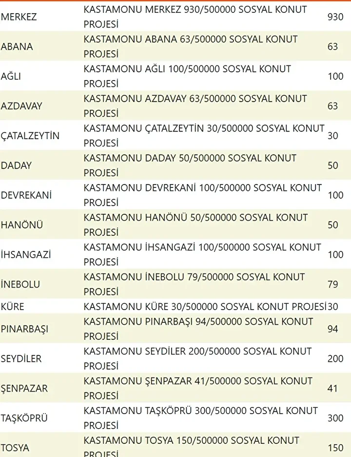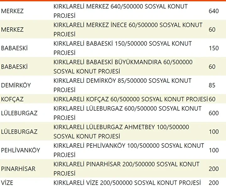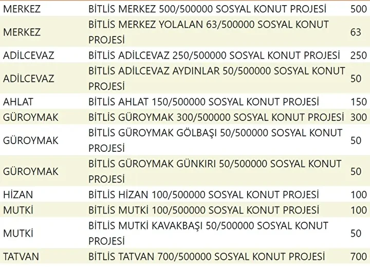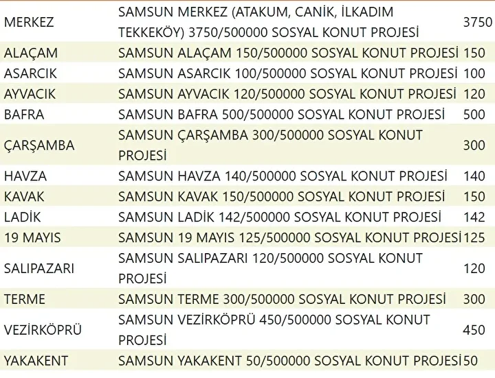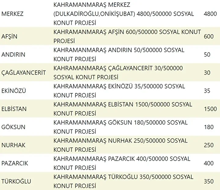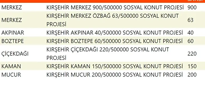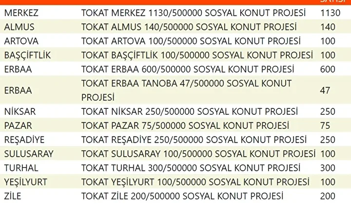 Projede en fazla konutun yapılacağı iller İstanbul, Ankara, İzmir, Bursa ve Konya olarak kayıtlara geçti. Bu doğrultuda 81 ilde 500 bin konutun yükseleceği ilçeler de netleşti.