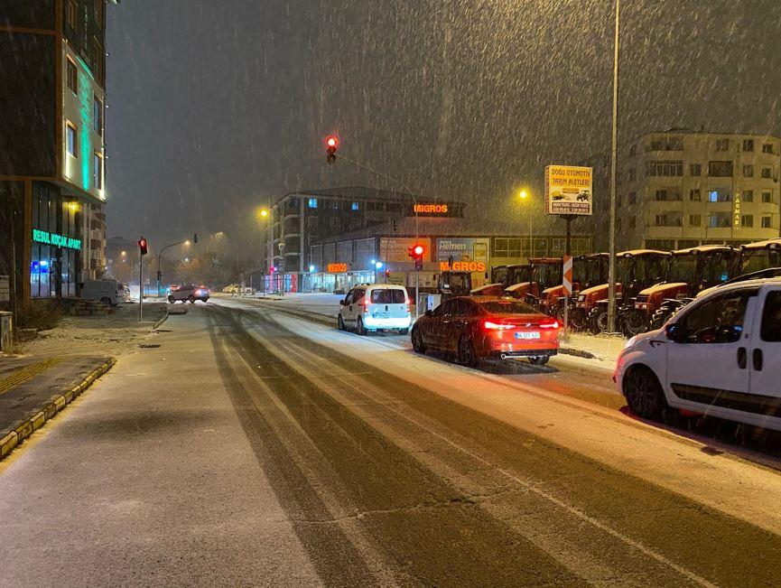 İl genelinde gün boyunca etkisini gösteren sağanak yağış, akşam saatlerinde yerini mevsimin ilk karına bıraktı.