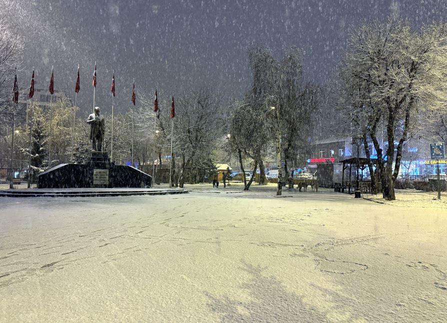 Kısa sürede yoğunlaşan kar yağışı, kent merkezini tamamen beyaza bürüdü. Caddeler, parklar ve park halindeki araçların üzeri karla kaplandı.